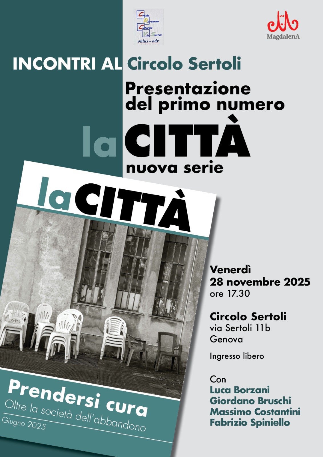 Vi aspettiamo alle 18, al Teatro Stradanuova, vico Boccanegra (il primo vicolo a destra di via Garibaldi venendo da piazza della Meridiana)